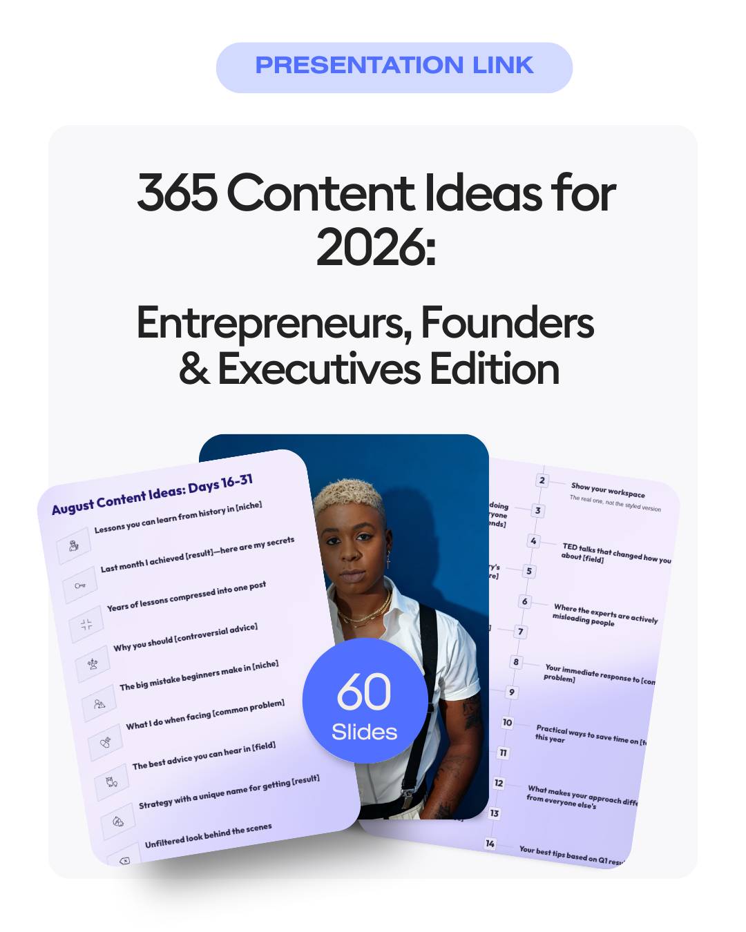365 content ideas you can actually use, written by someone who's built a multi-million dollar agency and generated over $175 million in revenue for the world's top creators and brands—not some AI guru who's never posted anything that mattered. For the price of a coffee, you'll never waste another hour trying to figure out what to say.